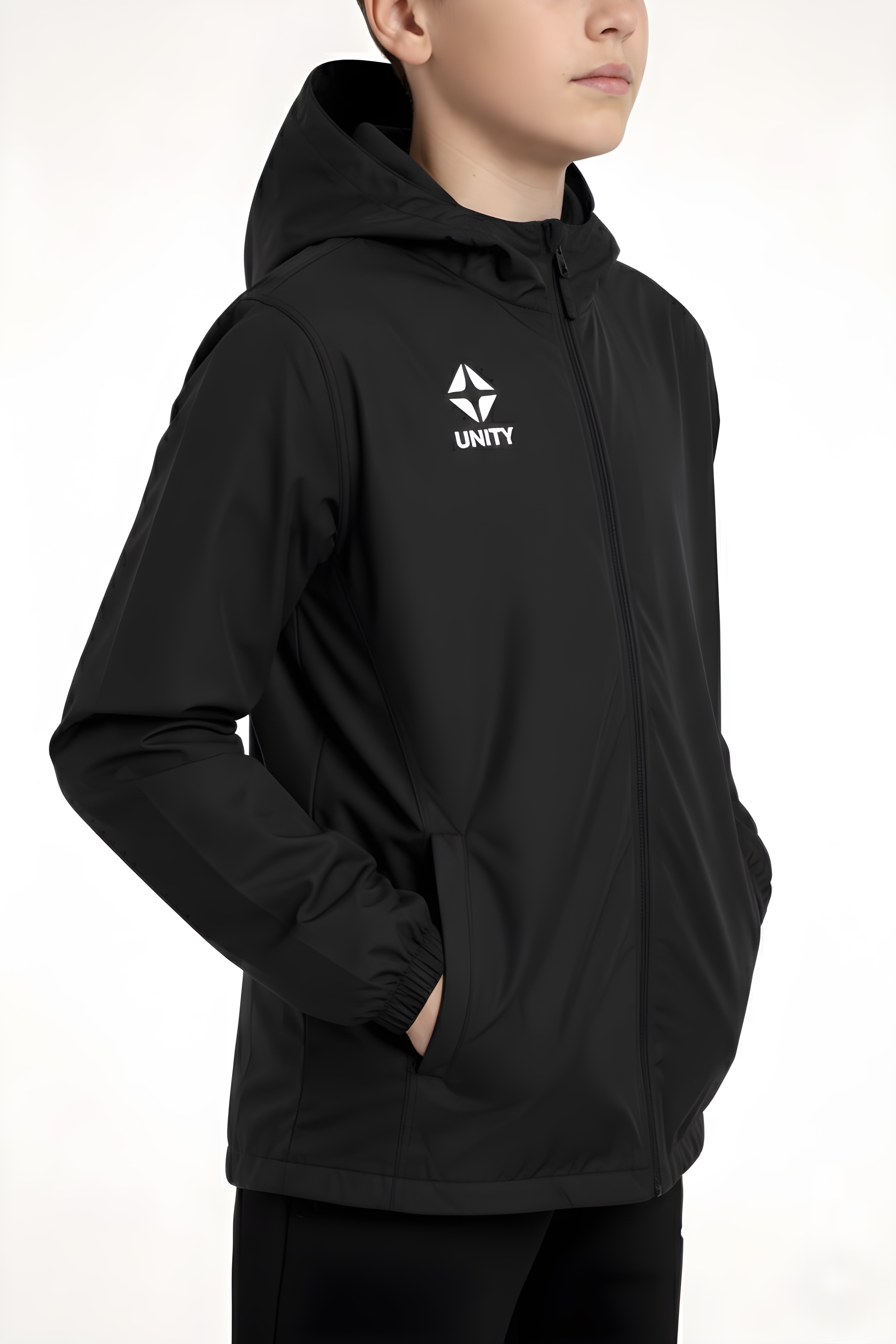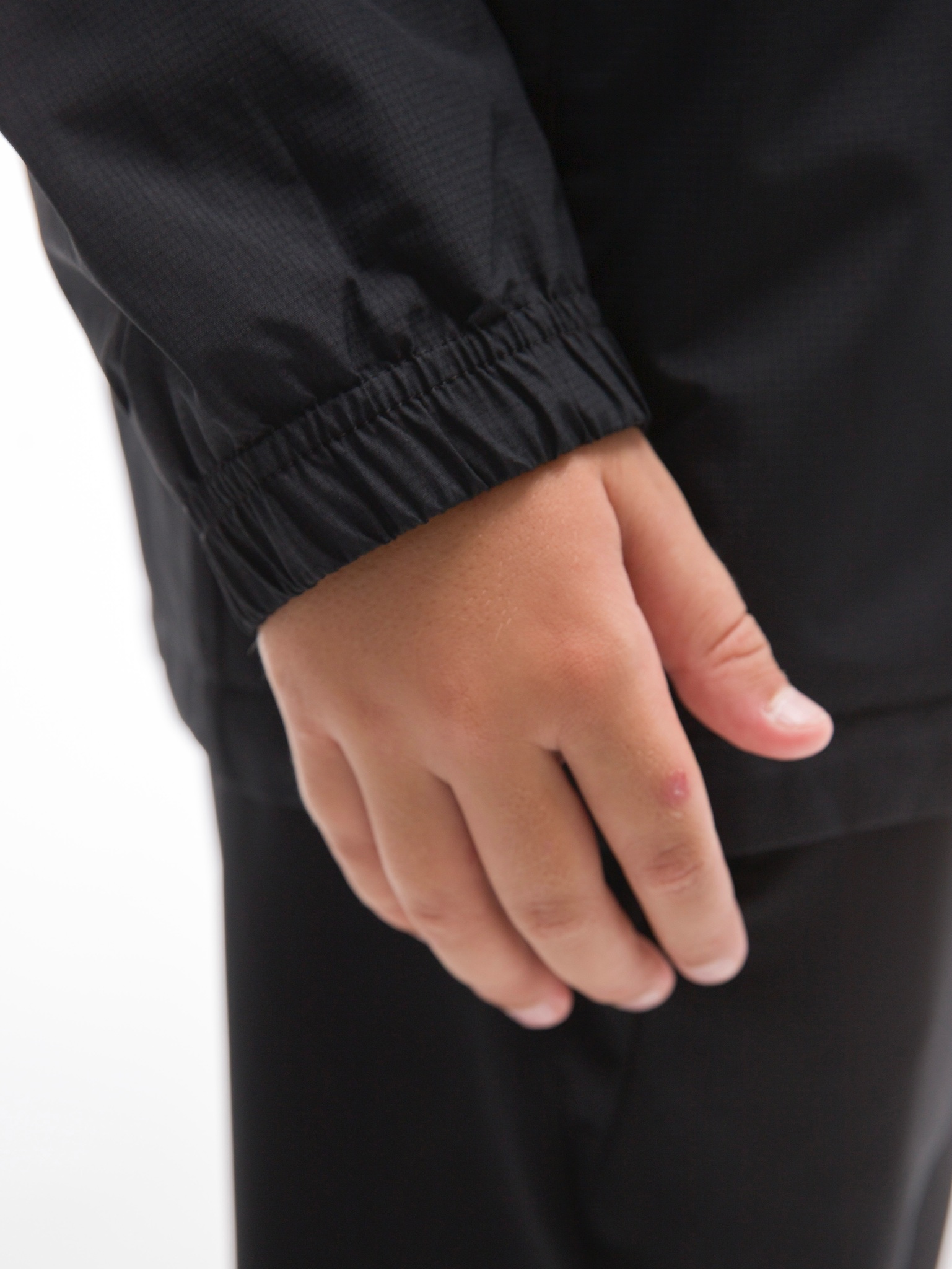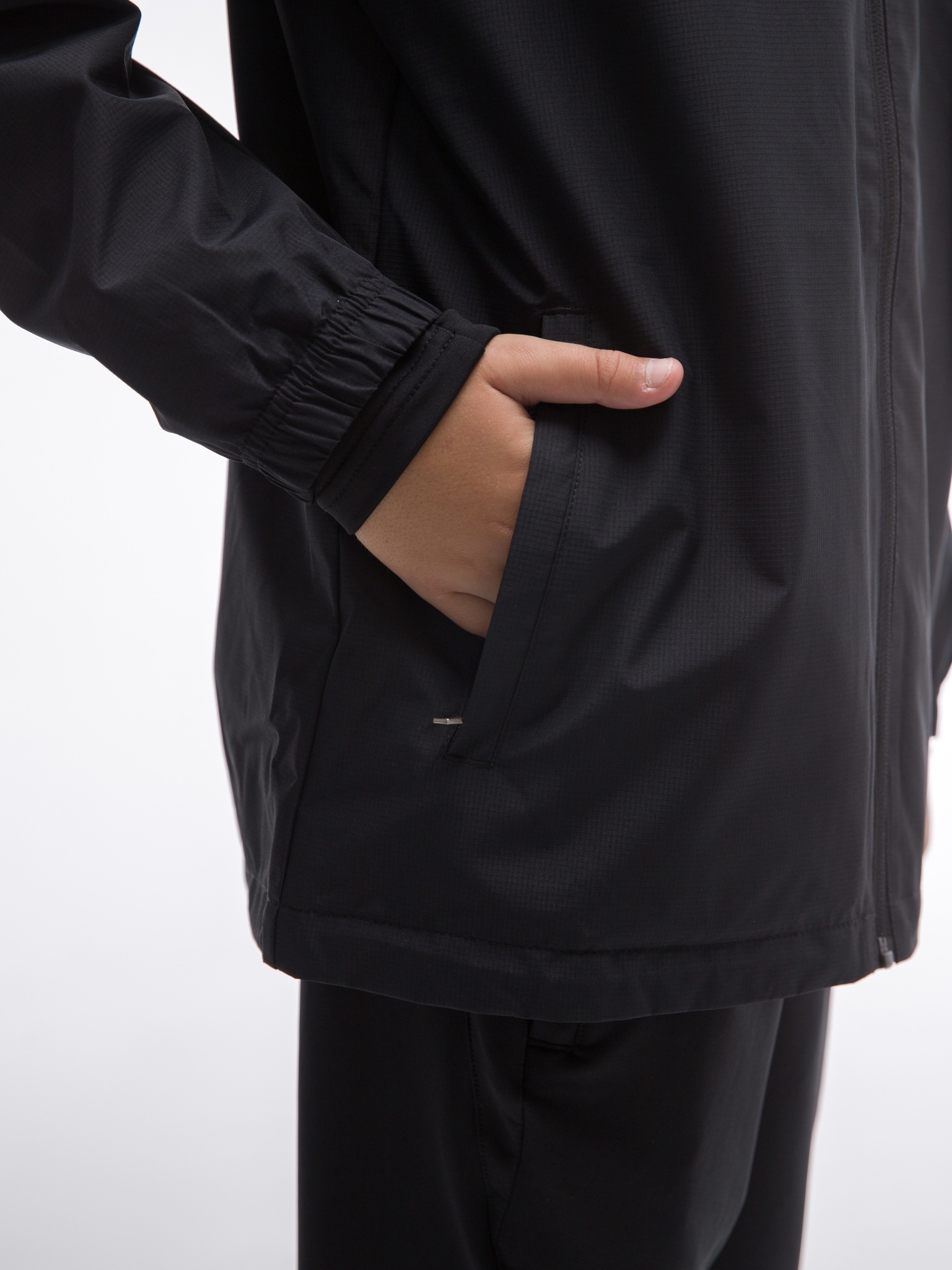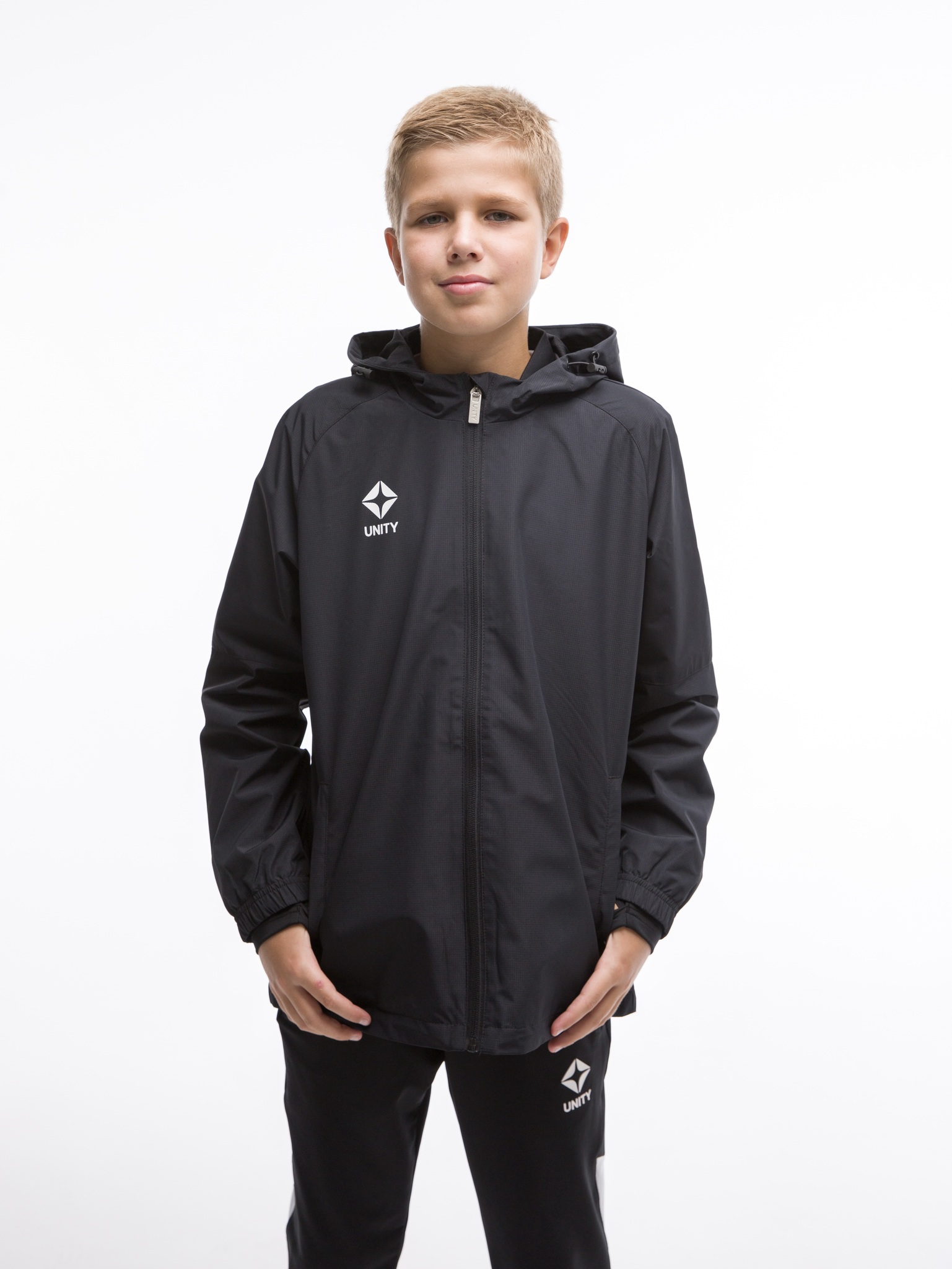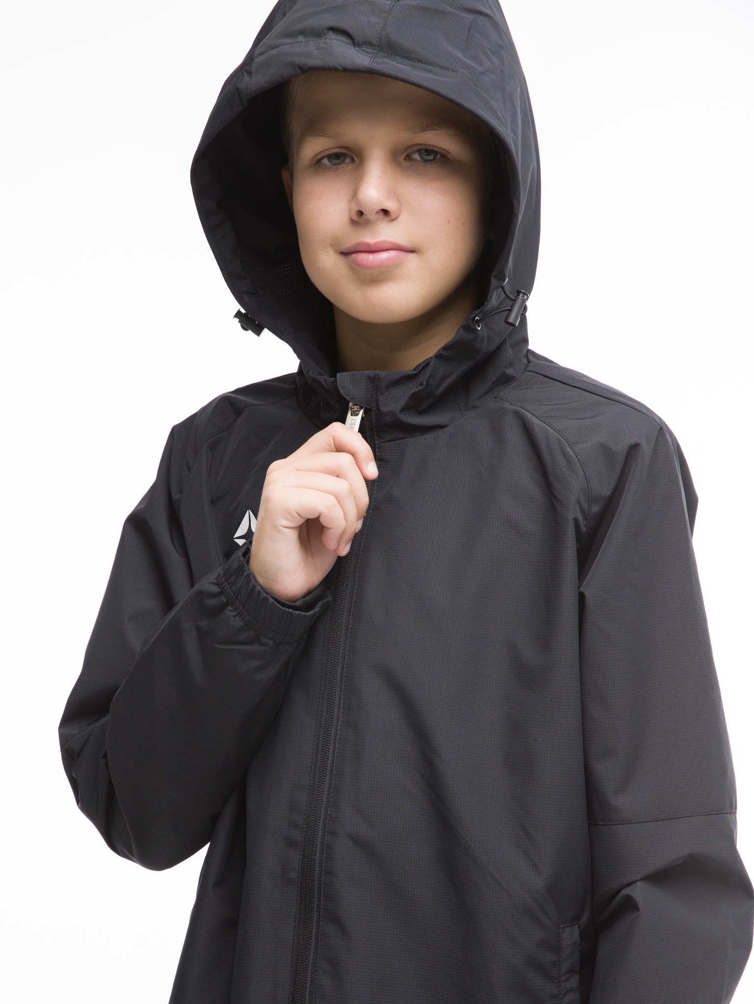 Данная ветровка выполнена в свободном покрое, обеспечивающем максимальную подвижность ребенка во время активных занятий спортом. Длинные рукава и наличие капюшона защитят от ветра благодаря специальной ветроотталкивающей мембране. Черная гамма с контрастным принтом делает модель актуальной и привлекательной. Подходит для футбола и беговых дисциплин.
